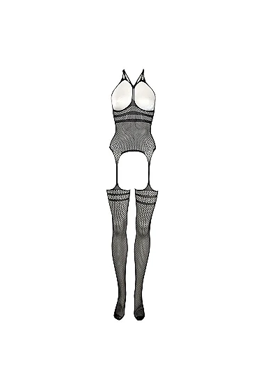 Le Desir Lingerie STRAPPY SUSPENDER FISHNET BODYSTOCKING WITH OPEN CUP BRA and OPEN CROTCH Black