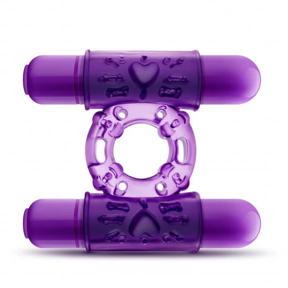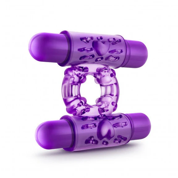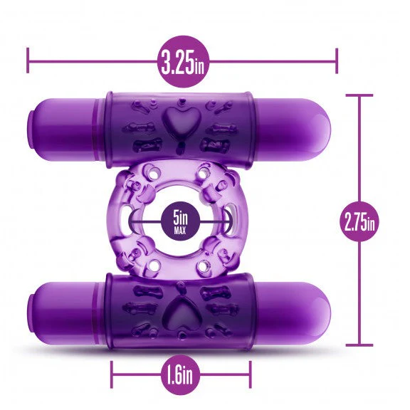 PLAY WITH ME DOUBLE PLAY DUAL VIBRATING COCK RING with 2 Purple Bullet Vibrators