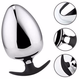 JOYGASMS Large Massive Solid Metal Wearable Butt Plug with Black Wide Silicone Base