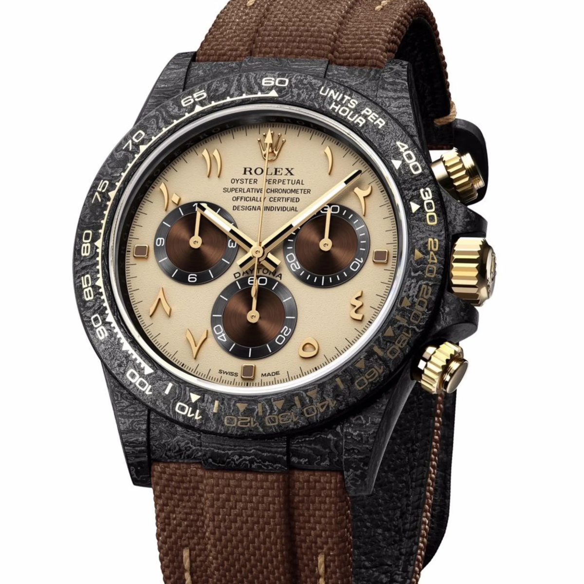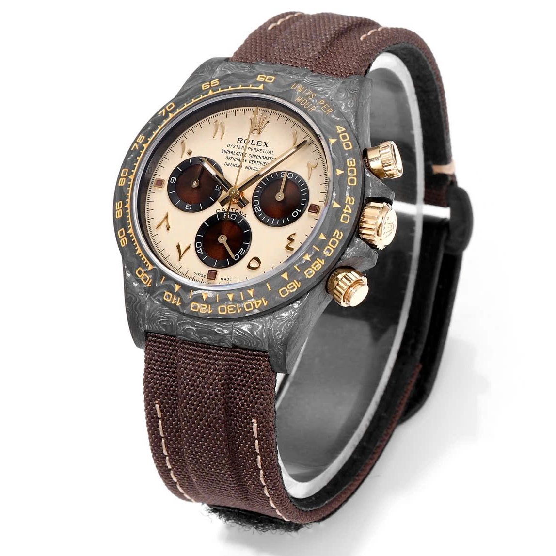 【Super Clone】ROLEX Cosmograph Daytona DIW Carbon “DESERT EAGLE ARABIC” 40mm Replica 1:1 – Top Quality Version