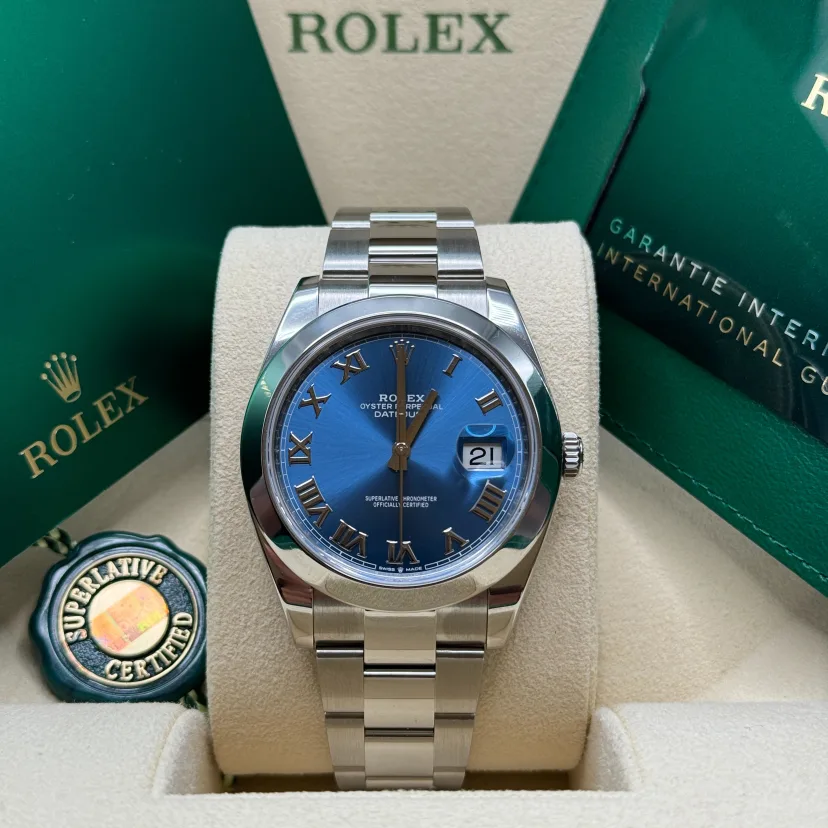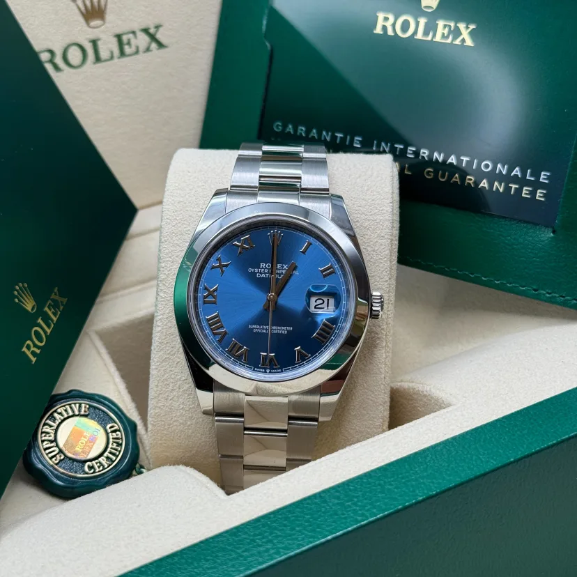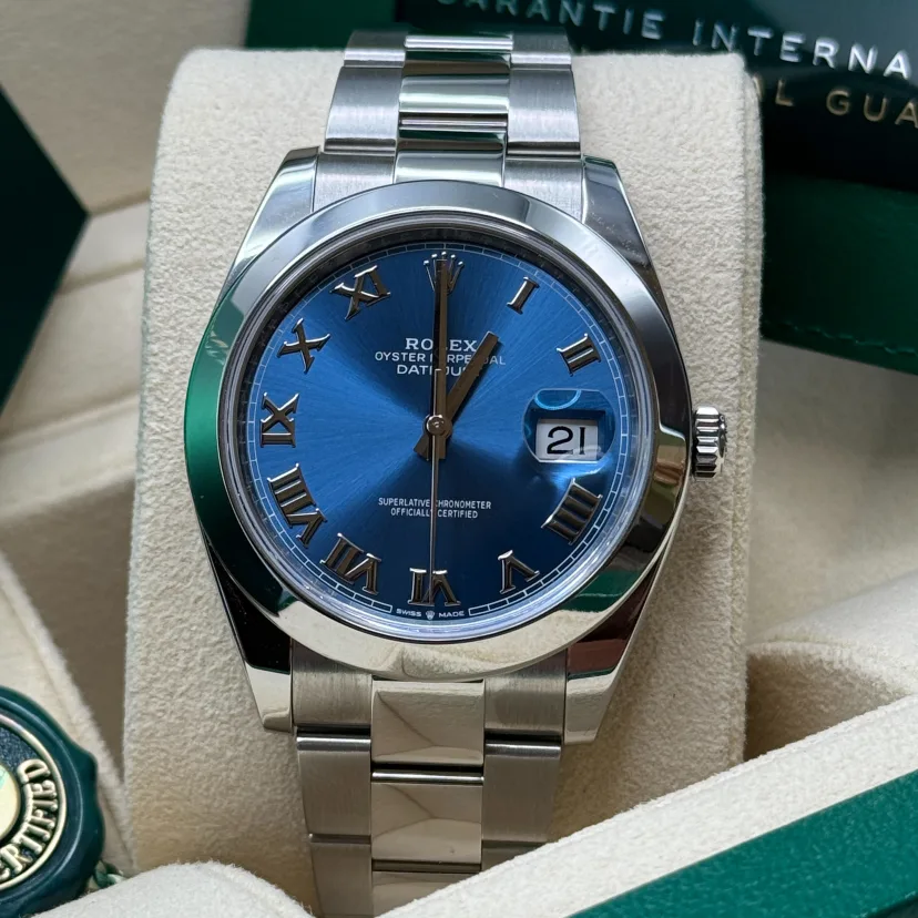 【Super Clone】ROLEX Datejust 41mm 126300 Blue Roman Oyster Stainless Steel Watch