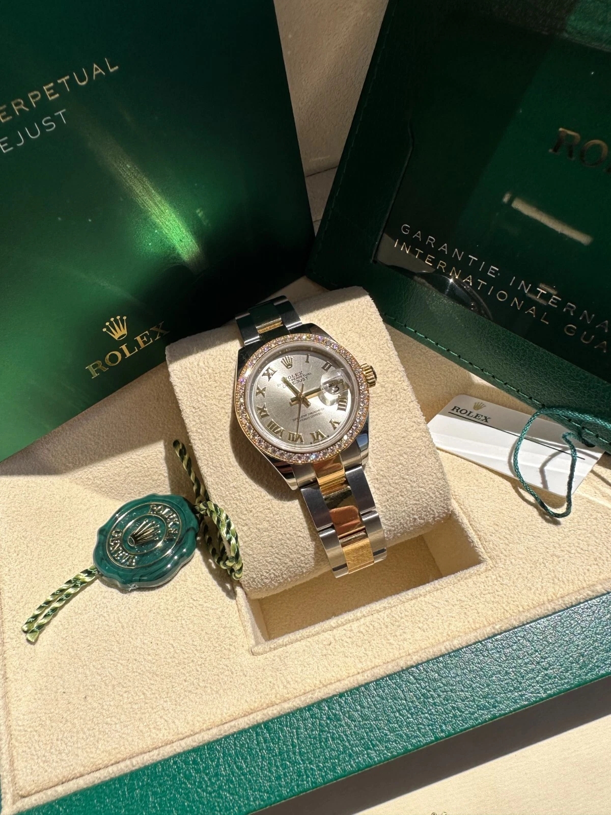 【Super Clone】ROLEX Lady-Datejust 28mm 279383RBR Silver Diamond Dial Yellow Rolesor Oyster Bracelet